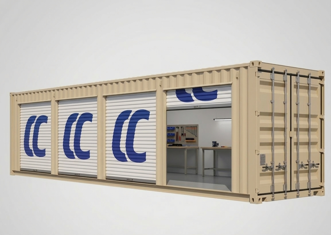 40ft Refurbished Storage Container w/ Four 8ft Roll-up Doors on Left Side for sale